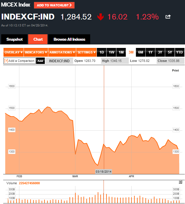 Mark Adomanis writes that Russia’s problems, the true “price” of its actions, has not been through US or European sanctions but by the natural market reaction to Russia’s recent behavior. Adomanis cites many data points (capital flight of $70 billion being one of them), but he also points to the actions of Russia’s very own central bank.