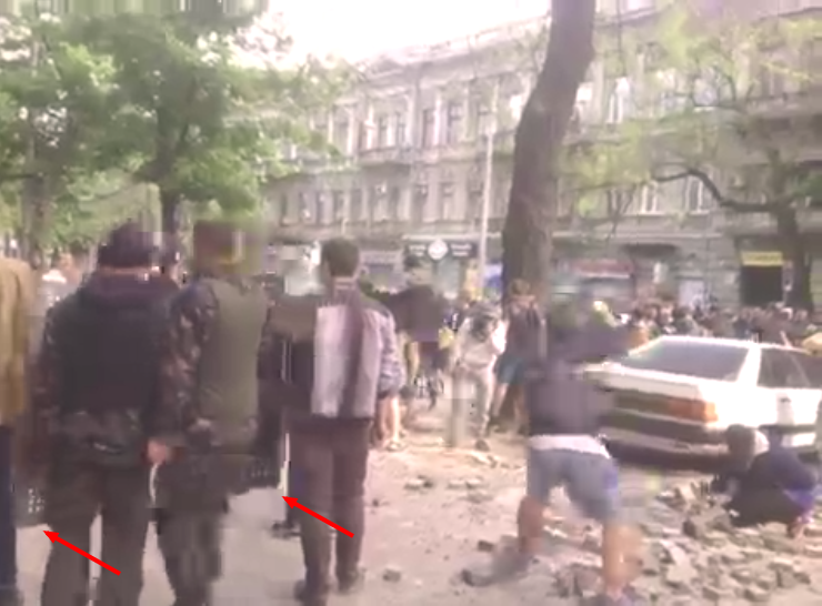 About 1,500 young men wearing masks and Right Sector armlets armed with chains, clubs and shields tried to stage a march along Odessa’s central streets, chanting “Glory to Ukraine,” “Death to Foes,” “Stab Moskals” (Moskal is an ethnic slur for Russians used in Ukraine), an ITAR-TASS correspondent reported from the site.