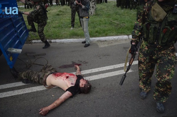 Members of a militia organised by Oleh Lyashko, a presidential candidate and leader of the Radical Party, have killed one and grievously wounded another in an attack on the separatist headquarters in the town of Torez in the Donetsk oblast. The Kyiv Post reports that Roman, 34, was found dead in the office, while Aleksandr, 25, was taken to hospital with severe wounds. Another man who did not want to be identified by the paper reported being struck with a rifle butt. The paper writes: