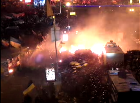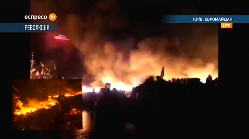 0159 GMT: It is almost 4 AM. Things have been relatively quiet for the last few minutes, but the flames of Maidan still burn: