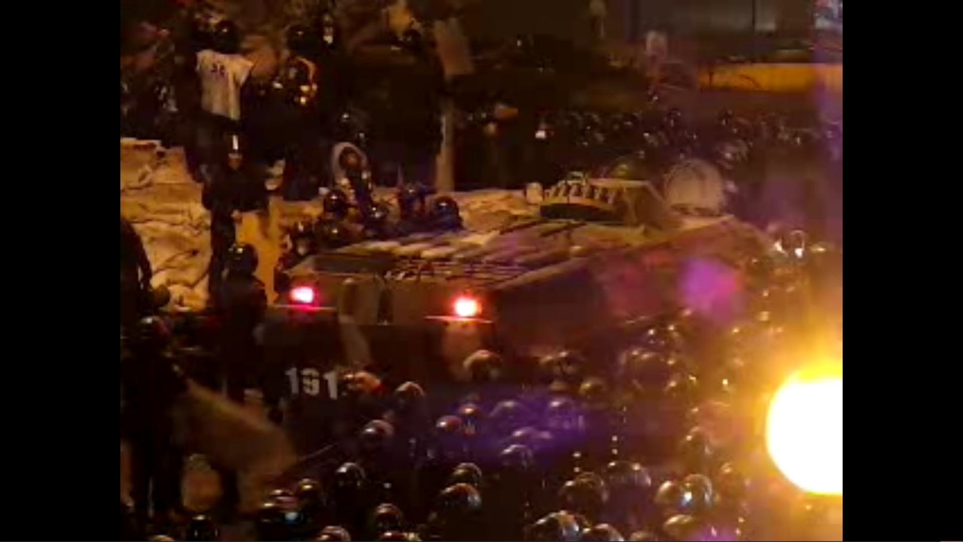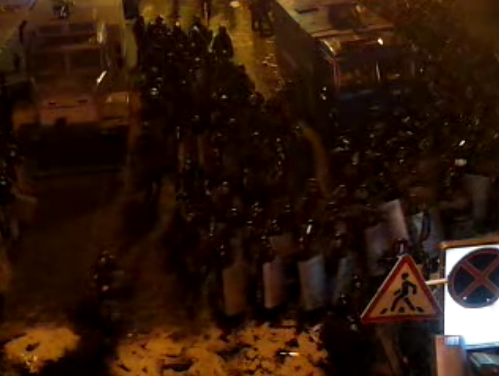 1635 GMT: The Interior Ministry gave the protesters a deadline to withdraw from the streets. That deadline passed 35 minutes ago. Two screen captures from livestreams show protesters huddled in Maidan Square while armed police move towards the front lines: