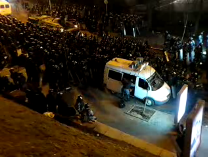 1740 GMT: We’re still watching the livestream from Kiev. Moments before now, someone broadcast the national anthem over the PA. Now, huge groups of police and riot vehicles are still gathering, perhaps preparing to break up the crowds. Here is a screanshot: