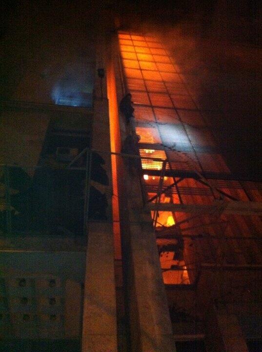 Top floors of Trade Unions bldg engulfed in flames. Reports of people trapped inside. Some climbing down to safety. pic.twitter.com/rtzlqDEYS4
